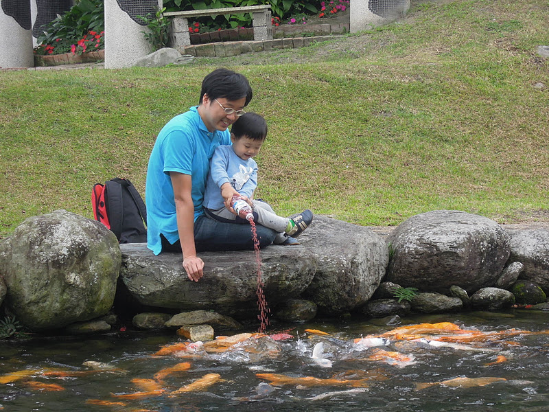 上周末進城採購途中,照舊帶著Aaron去餵魚!